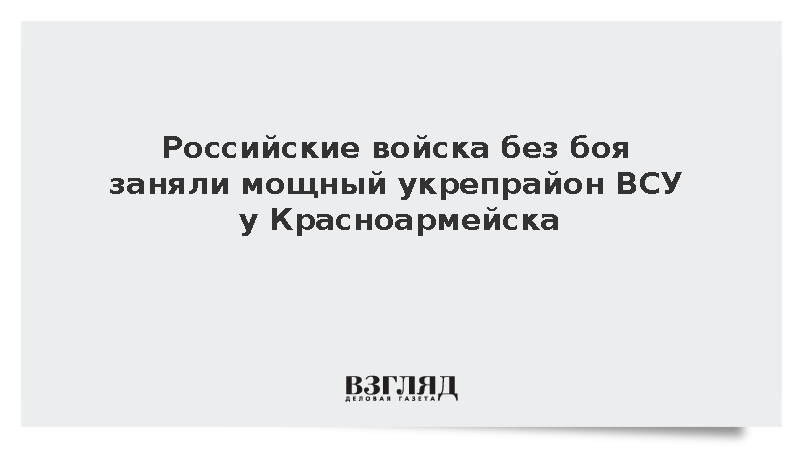 Российские войска смогли без боя занять мощный укрепрайон вооруженных сил Украины, построенный украинской стороной у Покровска (украинское название города Красноармейска), так как ВСУ не отправили туда солдат, сообщили в украинских соцсетях.