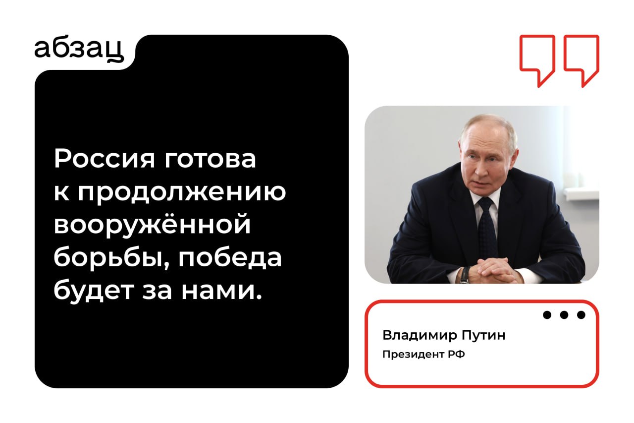 «Россия готова к продолжению вооружённой борьбы, победа будет за нами», – подчеркнул Владимир Путин.