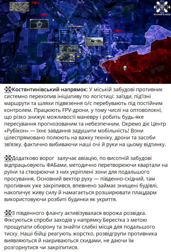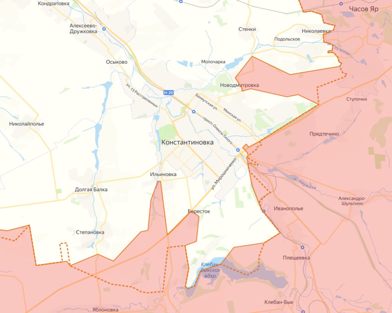 Кроме того, давление оказывается с южного фланга, обходя н.п.Бересток, российские войска уже зашли в н.п.Ильновка, который по факту является частью Константиновки.
