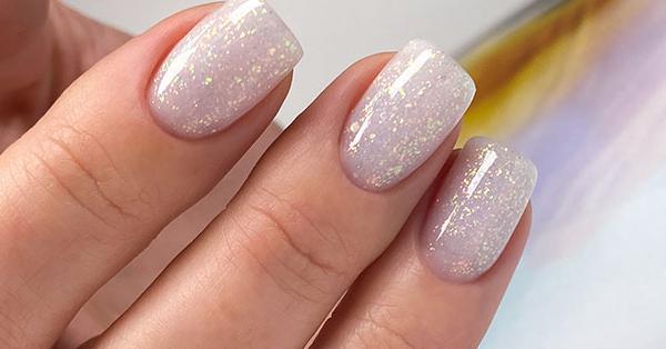 Она носила бы лаконичный и в то же время шикарный молочный гель-лак с кусочками потали.