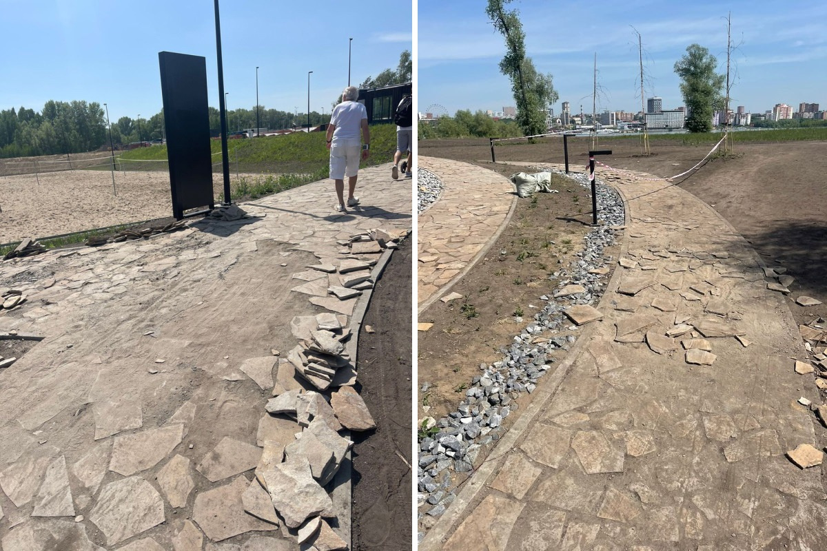 «Тропинки уже рассыпаются»: новосибирцев возмутило состояние пешеходных дорожек в новом парке «Арена»