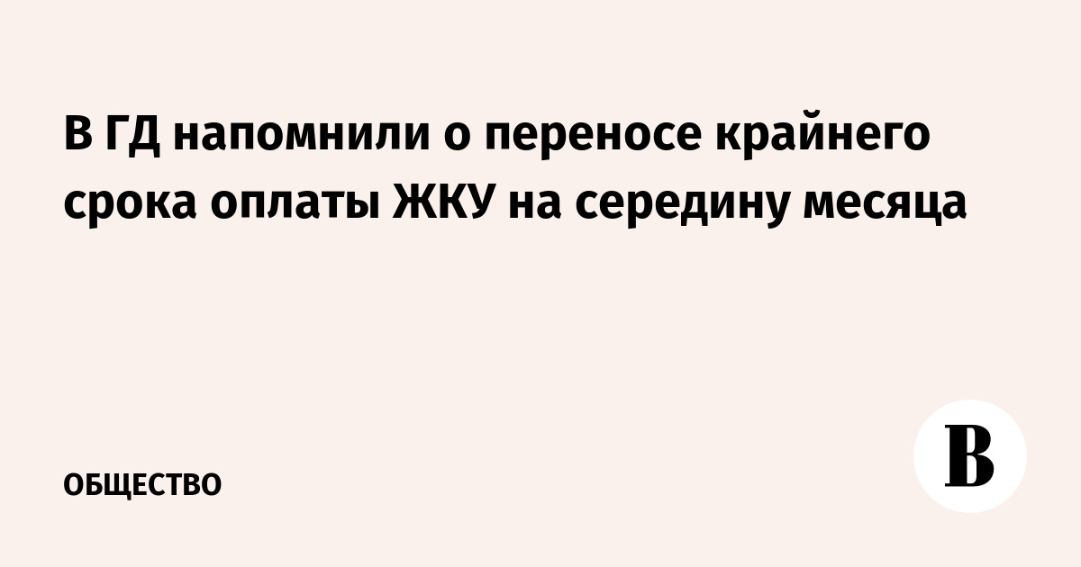 Крайний срок оплаты услуг ЖКХ будет перенесен с 10-го на 15-е число каждого месяца. Соответствующее изменение вступит в силу с 1 марта 2026 г., напомнил зампред комитета Госдумы по строительству и ЖКХ Сергей Колунов («Единая Россия») в беседе с ТАСС.
