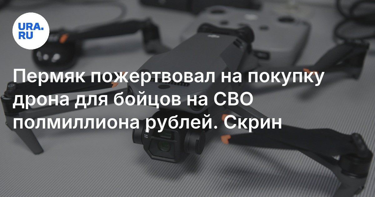 Житель Перми по имени Дмитрий перевел волонтерам, помогающим фронту, 500 тыс рублей. Деньги пойдут на закупку беспилотника DJI Mavic 3 («Мавик»), сообщается в сообществе «Вежливые люди», которые опубликовали скрин денежного перевода.