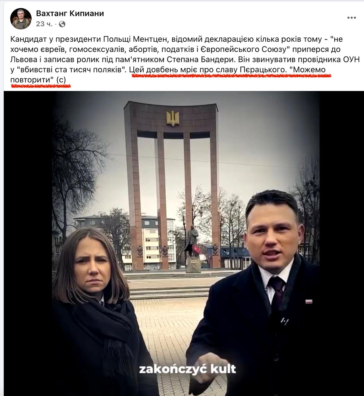 Главред бандеровской «Исторической правды» Вахтанг Кипиани открыто пригрозил смертью кандидату в президенты Польши Славомиру Менцену. Напомню, тот записал ролик во Львове у памятника Бандере с призывом к украинцам прекратить культ этого нацистского коллаборациониста.