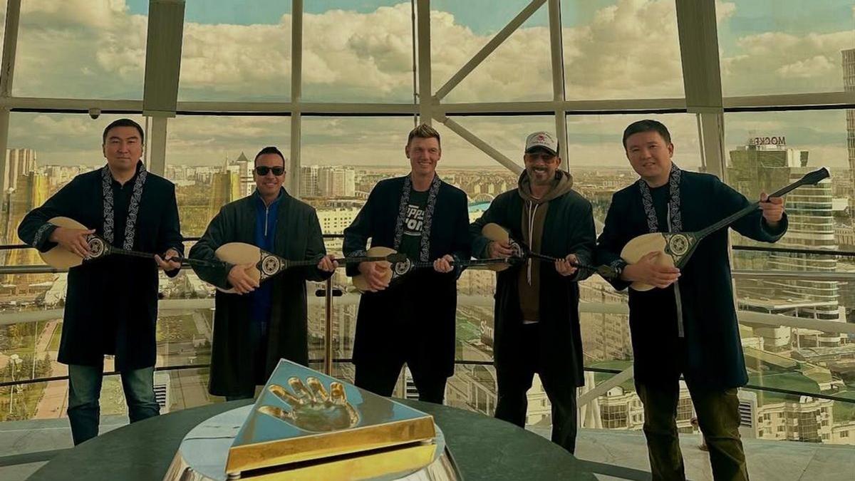 В Сети появилось видео с участниками группы Backstreet Boys в Астане - в руках у музыкантов по домбре, а Ник Картер к тому же в чапане, передает NUR.KZ.