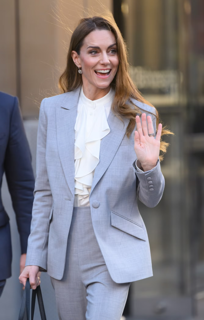 На мероприятии принцесса Уэльская появилась в элегантном сером костюме Roland Mouret. Его монаршая особо дополнила классической белой блузкой с жабо. Важной деталью в образе Кейт стали серьги Mappin & Webb. Это украшение — напоминание о крестинах ее единственной дочери, принцессы Шарлотты. Напомним, всего у Миддлтон трое детей. Помимо Шарлотты принцесса воспитывает двоих сыновей: Джорджа и Луи.