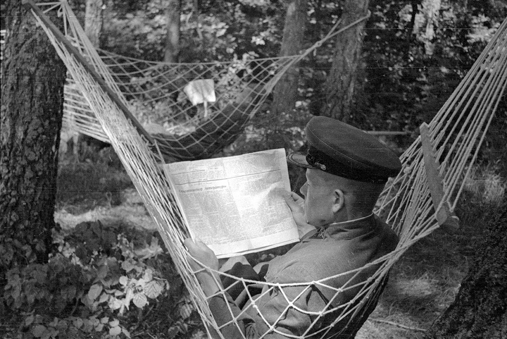 Гамак — один из обязательных атрибутов загородного отдыха для гедониста прошлого века. Летом такой господин перебирался из Петербурга в Лигово или Тосно, переодевался в белый костюм с соломенной шляпой и устраивался поудобнее. В гамаке любил побездельничать со вкусом, читая книгу или газету. Когда надоедало, заводил граммофон с модными романсами.