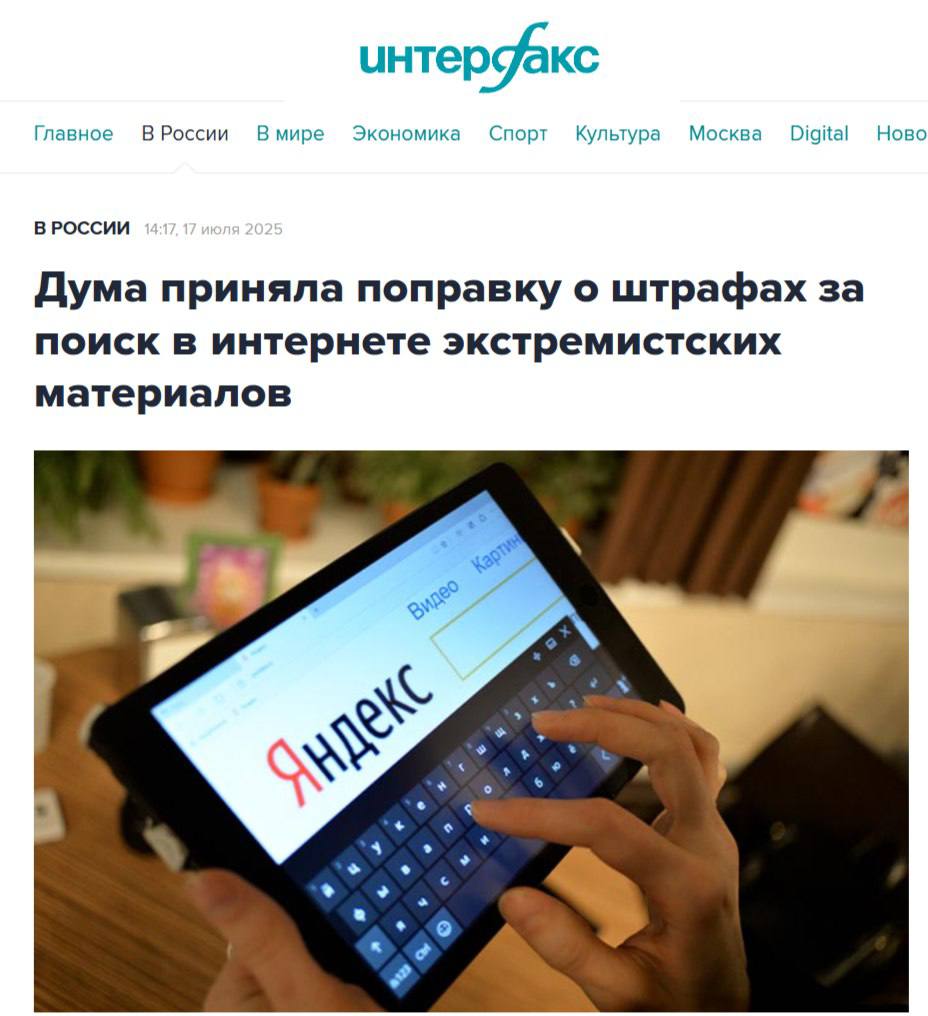 ΠΡΠ΅Π΄ΡΠ΅Π΄Π°ΡΠ΅Π»Ρ ΠΊΠΎΠΌΠΈΡΠ΅ΡΠ° ΠΠΎΡΠ΄ΡΠΌΡ ΠΏΠΎ ΠΈΠ½ΡΠΎΡΠΌΠ°ΡΠΈΠΎΠ½Π½ΠΎΠΉ ΠΏΠΎΠ»ΠΈΡΠΈΠΊΠ΅ Π‘Π΅ΡΠ³Π΅ΠΉ ΠΠΎΡΡΡΠΊΠΈΠΉ, ΠΊΠΎΠΌΠΌΠ΅Π½ΡΠΈΡΡΡ Π·Π°ΠΊΠΎΠ½ Π² ΡΠ²ΠΎΠ΅ΠΌ ΡΠ΅Π»Π΅Π³ΡΠ°ΠΌ-ΠΊΠ°Π½Π°Π»Π΅, ΠΎΡΠΌΠ΅ΡΠΈΠ», ΡΡΠΎ ΠΏΠΎΠΏΡΠ°Π²ΠΊΠΈ ΠΏΡΠ΅Π΄ΡΡΠΌΠ°ΡΡΠΈΠ²Π°ΡΡ Π½Π°ΠΊΠ°Π·Π°Π½ΠΈΠ΅ Π·Π° Π½Π°ΠΌΠ΅ΡΠ΅Π½Π½ΡΠΉ ΠΏΠΎΠΈΡΠΊ ΠΈ ΠΈΡΠΏΠΎΠ»ΡΠ·ΠΎΠ²Π°Π½ΠΈΠ΅ ΡΠΊΡΡΡΠ΅ΠΌΠΈΡΡΡΠΊΠΈΡ ΠΌΠ°ΡΠ΅ΡΠΈΠ°Π»ΠΎΠ², ΠΊΠΎΡΠΎΡΡΠ΅ Π½Π°Ρ ΠΎΠ΄ΡΡΡΡ Π² ΡΠΏΠΈΡΠΊΠ΅ ΠΠΈΠ½ΡΡΡΠ°. "Π‘Π΅ΠΉΡΠ°Ρ Π² Π½Π΅ΠΌ ΠΏΠΎΡΡΠ΄ΠΊΠ° 5,5 ΡΡΡΡΡ ΡΠ°ΠΊΠΈΡ ΠΌΠ°ΡΠ΅ΡΠΈΠ°Π»ΠΎΠ²", - ΡΠΊΠ°Π·Π°Π» ΠΎΠ½.