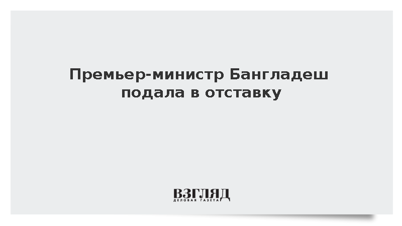 Глава правительства Бангладеш Шейх Хасина подала в отставку, сообщило агентство Reuters со ссылкой на посольство республики в Нью-Дели.