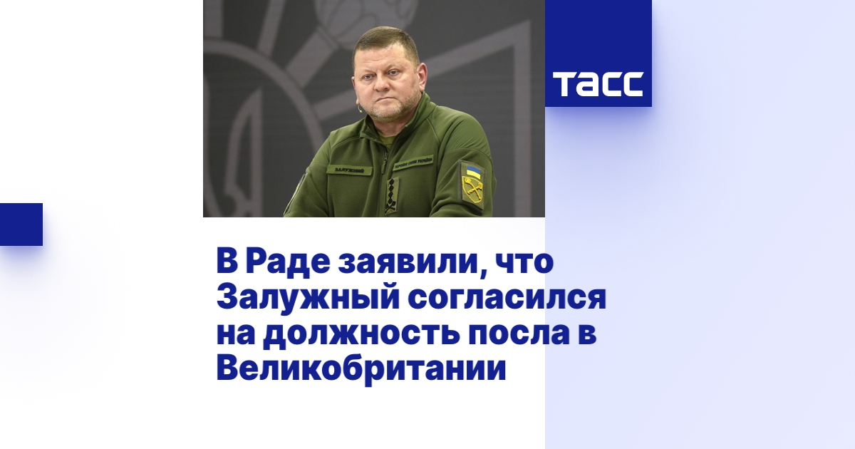 МОСКВА, 5 февраля. /ТАСС/. Депутат Верховной рады Евгений Шевченко утверждает, что главнокомандующий Вооруженными силами Украины (ВСУ) Валерий Залужный согласился уехать послом в Великобританию. По словам депутата, главкома могут отправить в отставку в ближайшие дни.