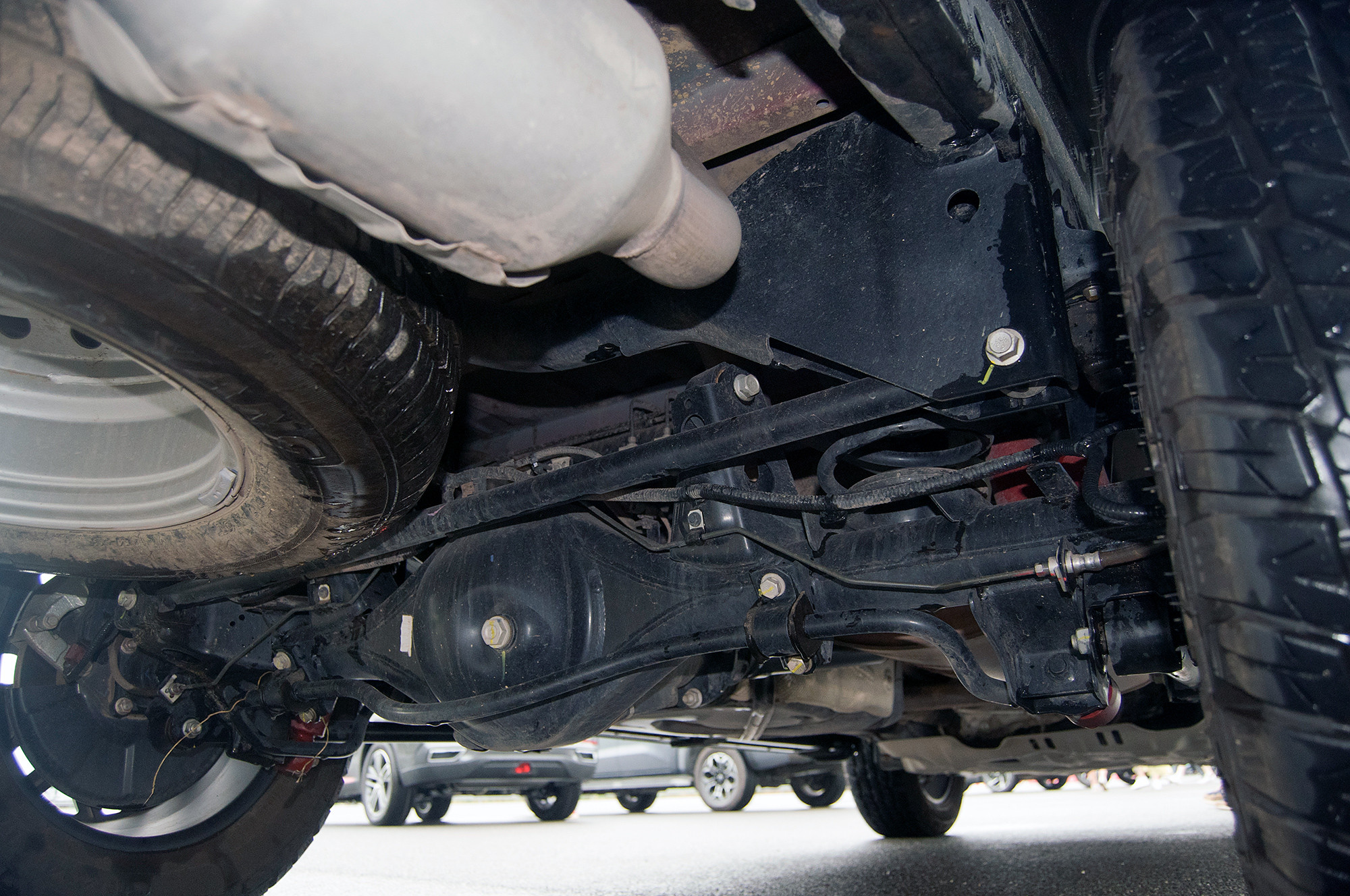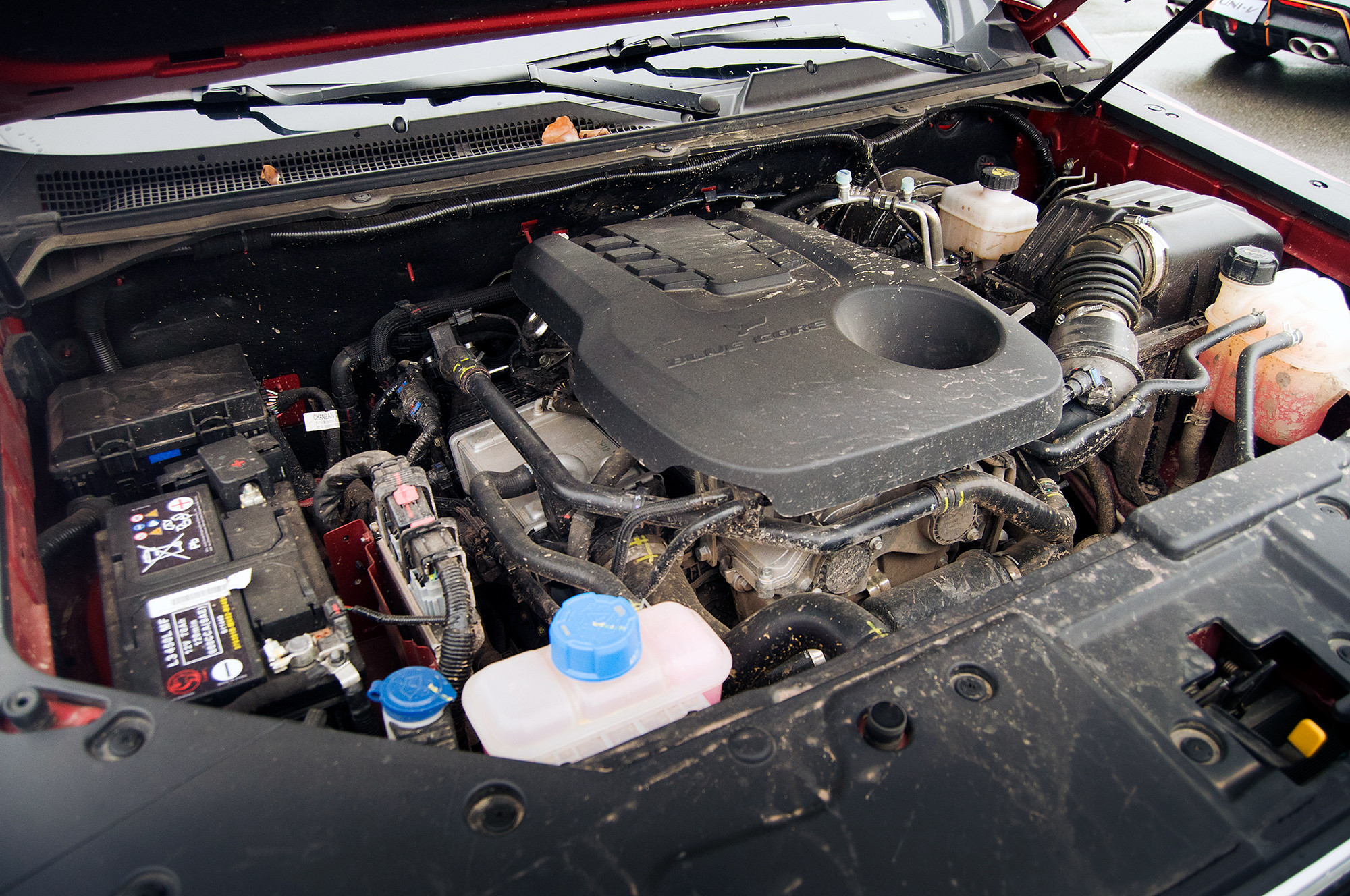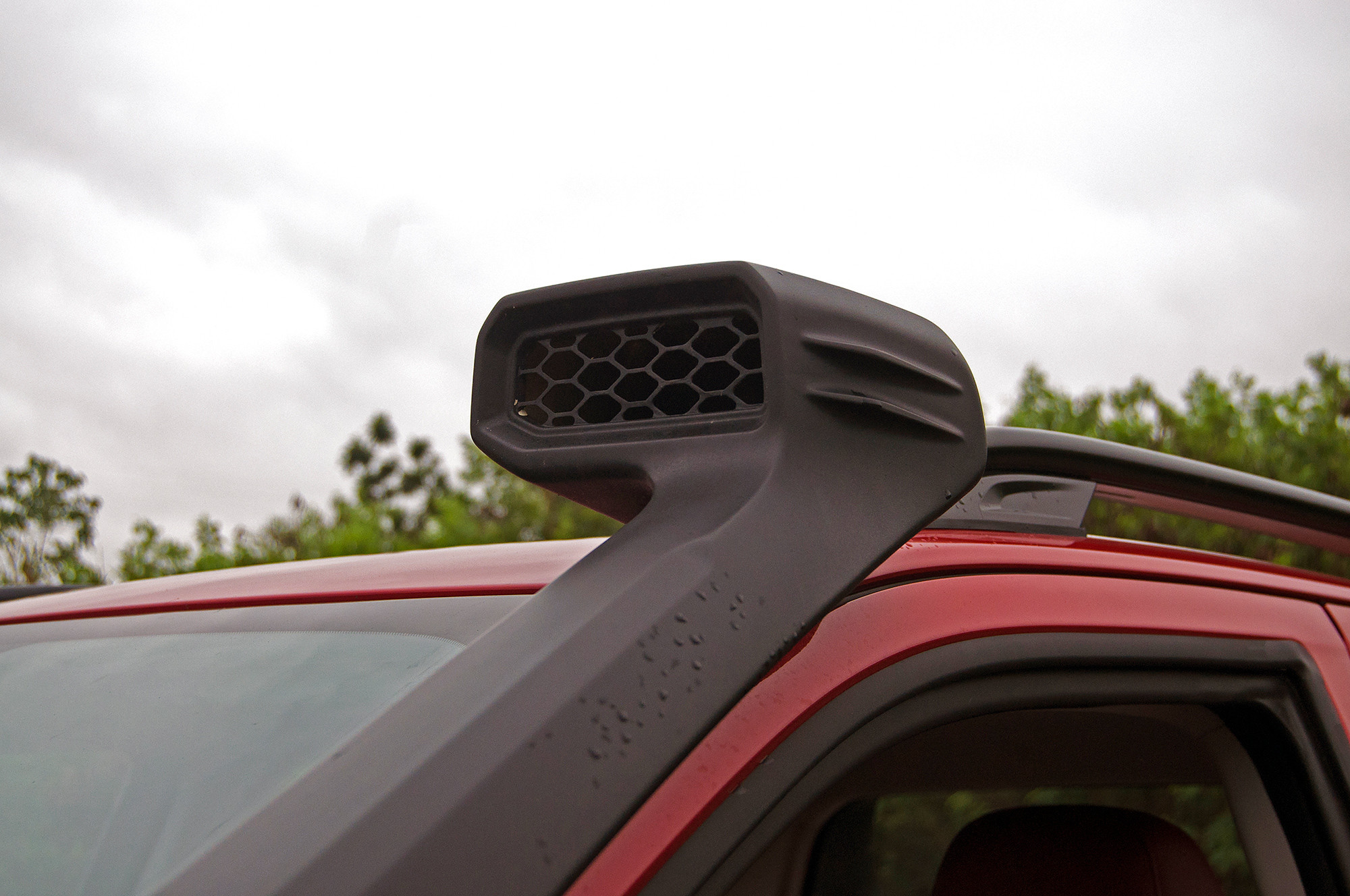 Если зайти со стороны капота, опять появляется ощущение двойственности. Шноркель, выведенный выше линии крыши, всем своим видом говорит: «Эй, парень, погнали на болота!». Но если открыть капот, удивляешься тому, сколько грязи успел принять на себя мотор в ходе короткой покатушки по асфальту. Да, под дождём, но ведь по асфальту… А всё подкапотное пространство загажено до невозможности. Впрочем, эту проблему, скорее всего, можно решить более эффективным уплотнителем. Но намёк всё равно понятен.