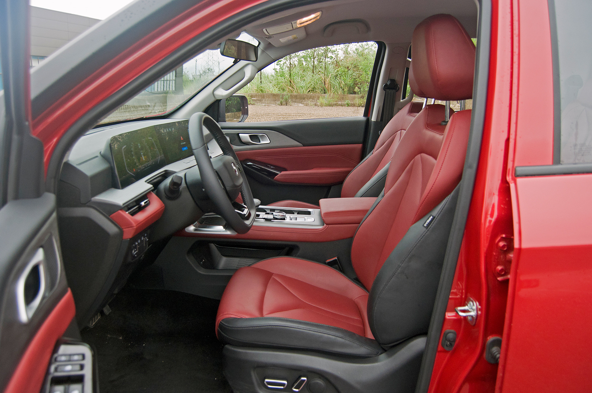 Итак, два впечатления. Первое – ого, какой тут мир лакшери! Кожи здесь хватило бы на трёх слонов, но она, конечно, не очень настоящая, а «эко». Но зато она есть почти везде: кресла, руль, вставки на приборной панели, подлокотник, обшивки дверей… Всё это «экокожаное». С кожей соседствуют рояльный лак, хромированные элементы, большие экраны мультимедийной системы (12,3 дюйма) и приборки (7,5 дюймов). Разумеется, есть и непременные атрибуты китайского боярского автомобиля в виде встроенного регистратора, ионизатора воздуха, голосового управления, помощника парковки и прочих не очень нужных, но забавных штучек. Лакшери? Однозначно.