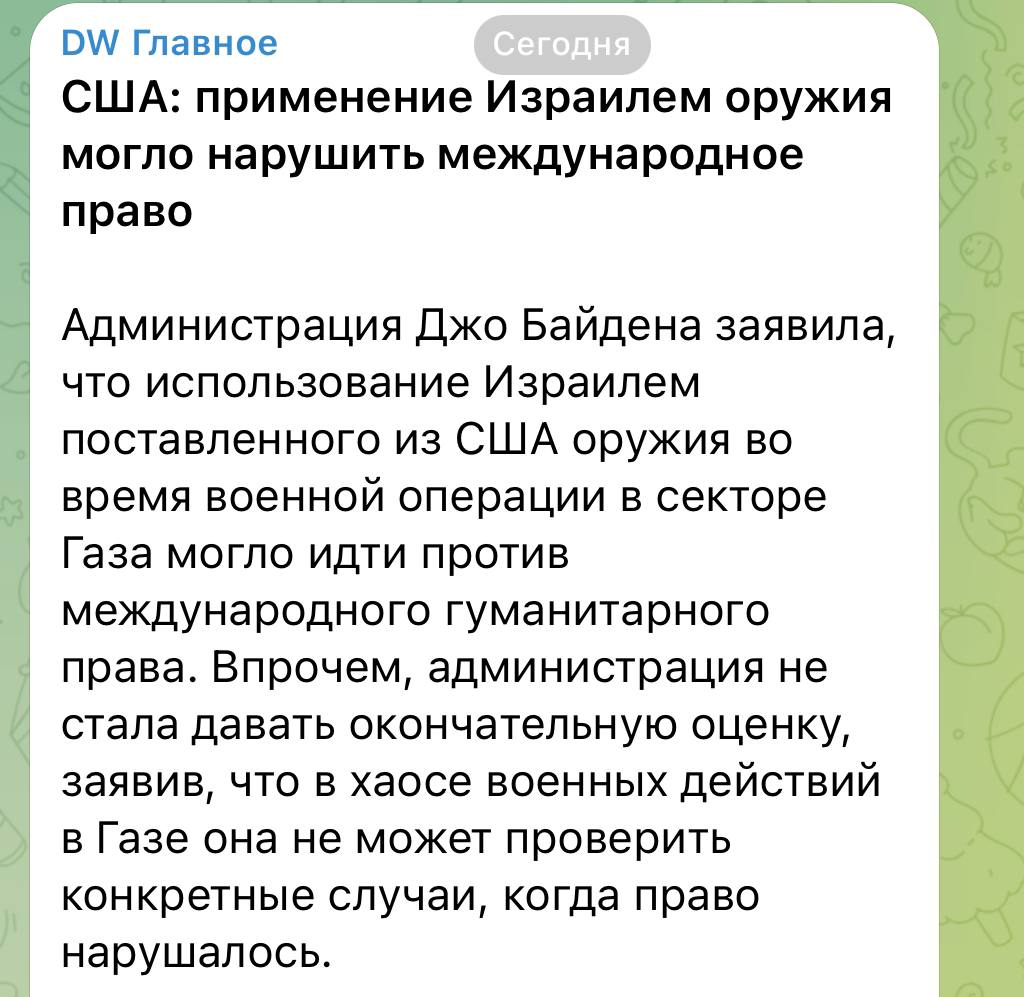 США почти уверены, что Израиль американским оружием нарушал международное право.