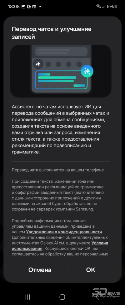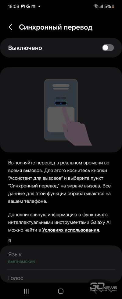 Все остальные возможности, обусловленные искусственным интеллектом, уже не связаны с «гибкостью» устройства. По большей части они уже знакомы по тем же Samsung Galaxy S24 (и более ранним версиям, на которые они были добавлены с последующими обновлениями), но даже в них за прошедшие полгода произошли обновления. Самые интересные функции, за которые зимой было обиднее всего, получили еще в конце весны поддержку русского языка: это тот самый синхронный перевод речи на лету (работает средне, но работает!) даже при обычных звонках в офлайн-режиме и функция расшифровки аудиозаписей, сделанных на встроенный диктофон.