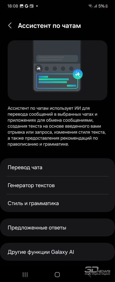 - Функция «Чат-ассистент» помогает не только менять стиль текста в сообщениях или других приложениях, но и сгенерировать по краткому запросу текст на заданную тему. Не очень хочется писать кому-либо при помощи ИИ, но бывает полезно, в принципе.