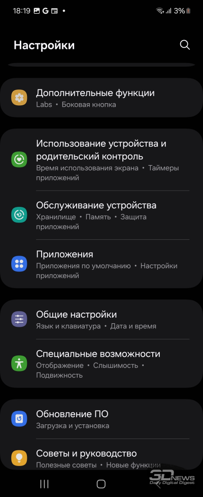 Что касается внутреннего экрана, то тут классика – обычный современный смартфон Samsung со всем, что для него принято: аккуратный интерфейс, умеренное количество предустановленных приложений, навигация по умолчанию при помощи навигационных значков (олдскул!). Работает все быстро и четко, без зависаний. Система занимает 17,5 Гбайт в памяти. Обещают до семи лет обновлений.