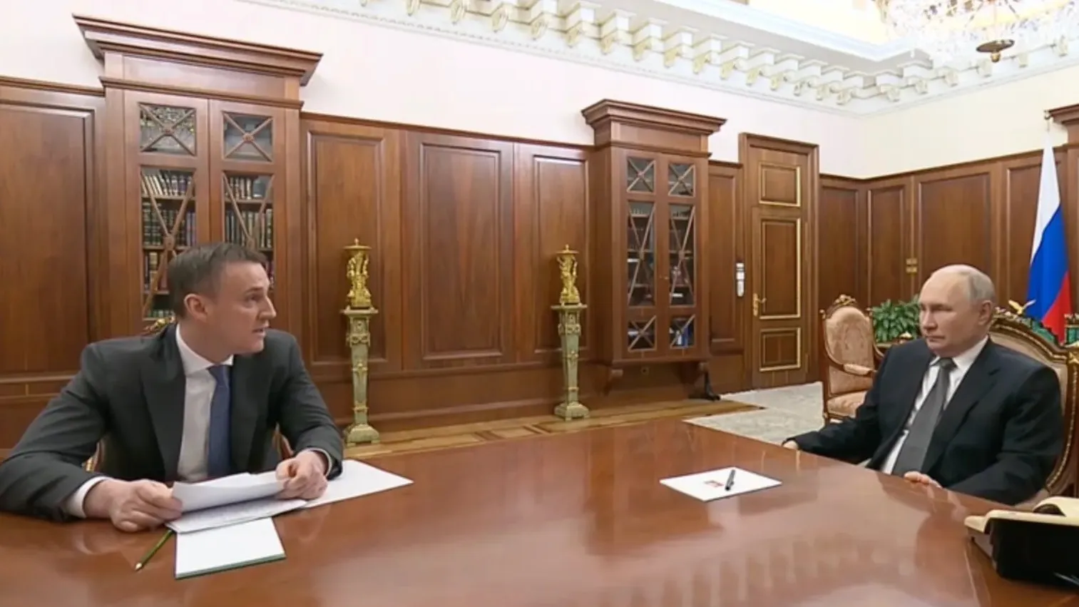 Президент Владимир Путин провёл встречу с министром сельского хозяйства Дмитрием Патрушевым. Видео © t.me / Кремль. Новости