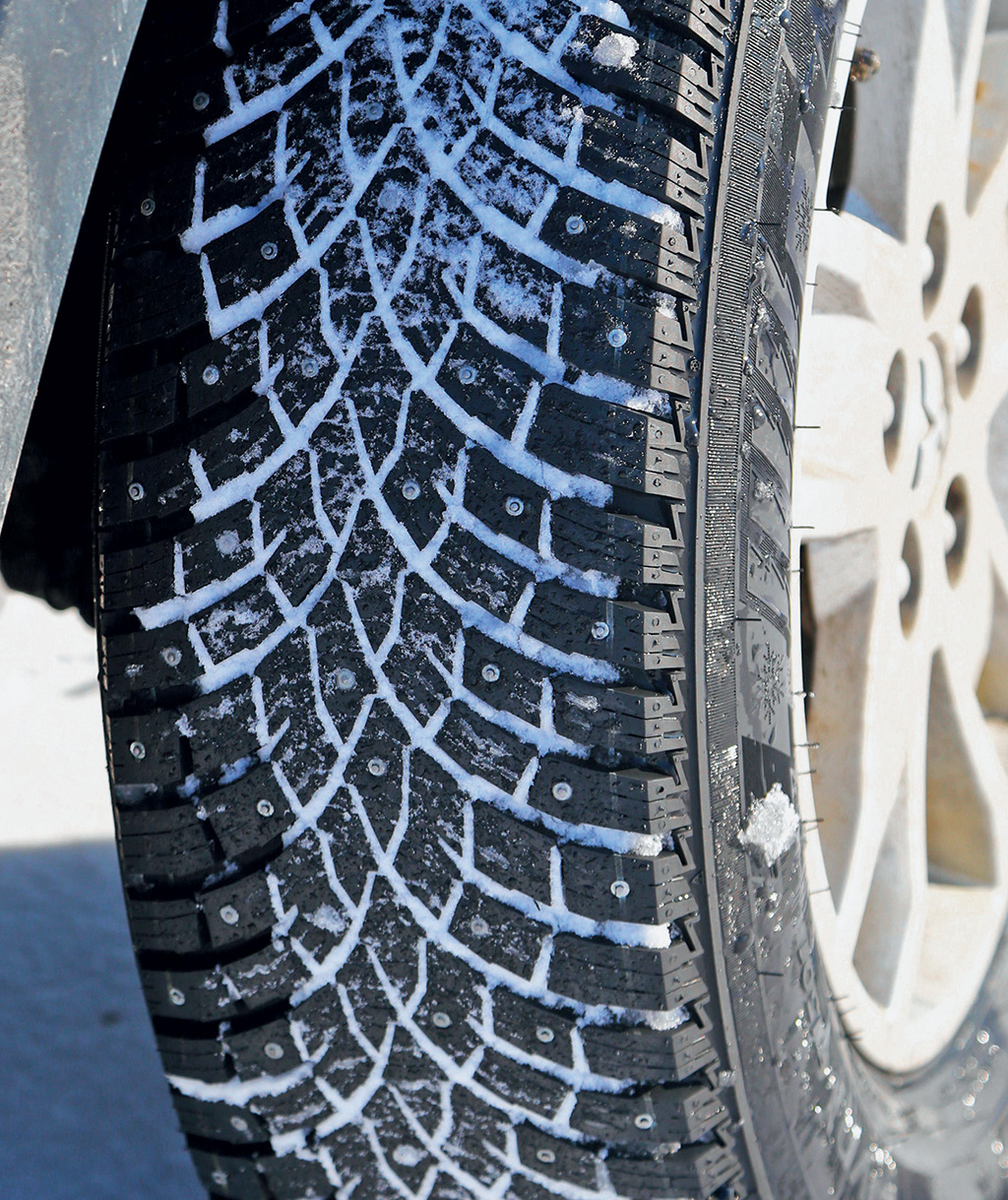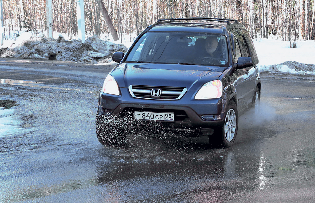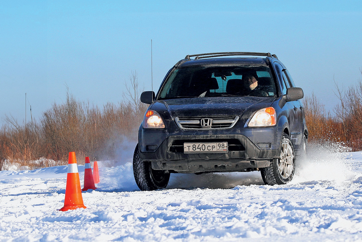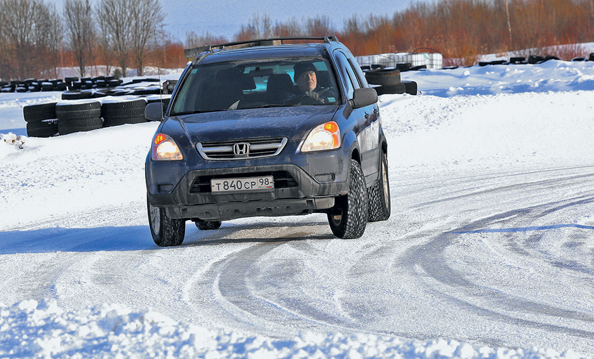 Поездка на Honda CR-V с не самой лучшей шумоизоляцией сопровождалась разговорами «вполголоса», а значит, акустический комфорт шипованных шин (сколько копий было сломано по этому поводу в форумах) — на вполне приличном уровне. В евроэтикетке TI501 указано, что уровень внешнего шума, издаваемого шиной при движении, составляет 72 дБ. Сам по себе результат хороший, но потенциальному покупателю мало что скажет. А вот послушать шины «вживую» стоит — звук абсолютно не раздражает. Здесь же на асфальте мы положительно оценили и стойкость шин к аквапланированию, убедившись, что скопившаяся в колеях вода, от растопленного солью и реагентами снега, проблем с управляемостью не вызывает. На асфальтовом покрытии полноценно не проверили только торможение. Дело в том, что шины, особенно шипованные, требуют тщательной обкатки, и тормозить «в пол» на свежих шинах без крайней необходимости не рекомендуется. Зато на льду и снегу упражнения с торможением TI501 выдержали достойно.