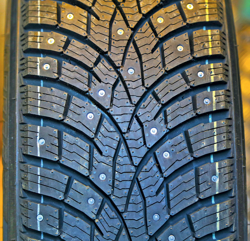 Радиус протектора спроектирован таким образом, что давление в пятне контакта шины с дорогой распределяется равномерно, а значит, все элементы рисунка, находящиеся в этой зоне, пребывают в рабочем состоянии. Шашки протектора крупные, и каждая изрезана рядами ламелей, обеспечивающих как дополнительные кромки сцепления, так и самоочищение рисунка. Но это отнюдь не говорит о том, что блоки рыхлые и реакция шины на работу рулем будет смазанной. В конструкции шины использованы самоблокирующиеся 3D-ламели, которые в зоне контакта с дорогой смыкаются, обеспечивая блокам нужную монолитность. На первый взгляд, инженерам Triangle удалось добиться баланса площадей блоков протектора (непосредственно зоны сцепления) и водоотводящих канавок, отвечающих за вывод воды и снежной каши из зоны контакта шины с дорогой. Теперь о шипах. Форма твердосплавной вставки здесь без каких-либо дизайнерских изысков — она круглая. И это значит, что шип будет одинаково эффективно работать во всех направлениях. Схема ошиповки оптимизирована таким образом, что линии шипов не пересекаются, а это означает, что каждый из них имеет свою «зону ответственности». Это то, что касается теории.