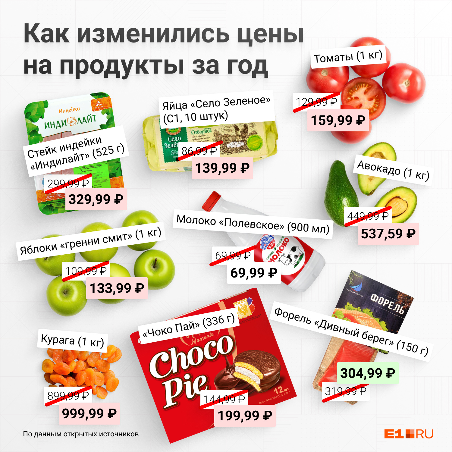 Подорожало почти всё! Показываем на картинке, как изменились цены на продукты в Екатеринбурге за год