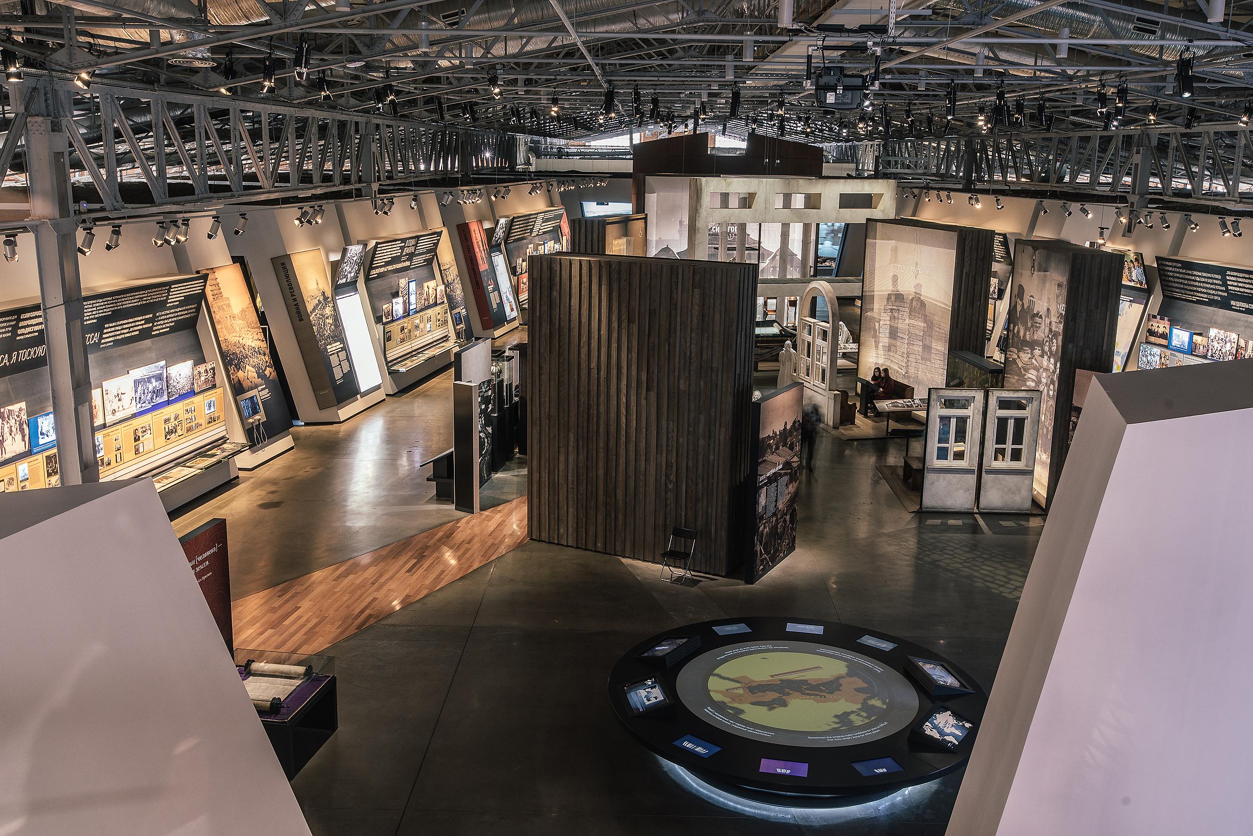 Мультимедийные экраны, проекции, фотоматериалы и видеофрагменты выстраиваются в маршрут, где каждый зал — как отдельный эпизод. От первых хроник и монтажных столов немого кино — к архивам советской студийной эпохи, затем — к постсоветскому и современному кинематографу. Звук, свет, масштаб изображений — все продумано так, чтобы не рассказывать, а показывать, как создаётся фильм и как режиссерский взгляд меняет реальность.