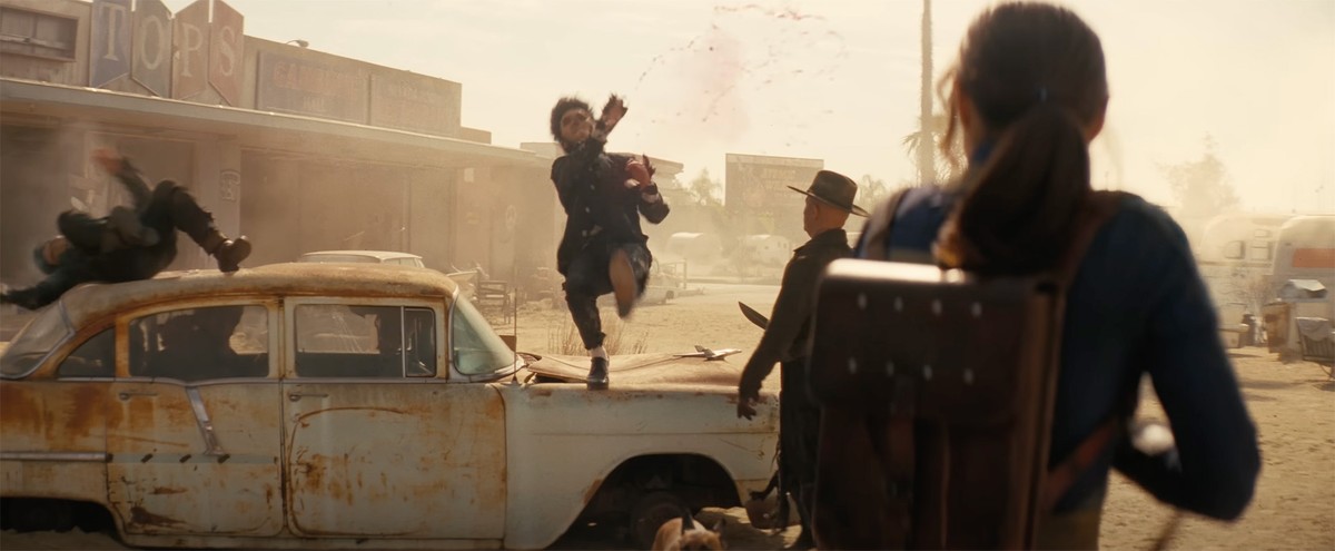 Создатели сериала детально воссоздали культовые локации New Vegas. Трейлер показывает Новак с динозавром Динки, где разворачивается крупная перестрелка с участием Люси и Гуля. А Люси во рту динозавра отсылает к снайперу Буну из игры.