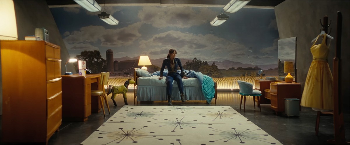 Люси просыпается в Убежище 21, превращённом мистером Хаусом в казино-отель. Интерьер точно соответствует игровому дизайну, включая предвоенную одежду на манекене и игрушечную лошадку.