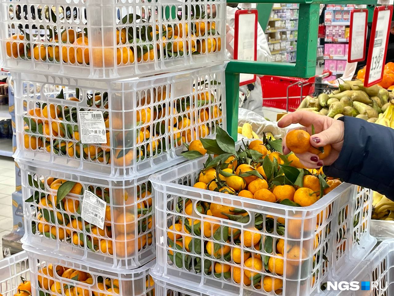 Скопление людей во фруктовом отделе — выбирают мандарины из ассортимента, приличного вида, не раздавленные.