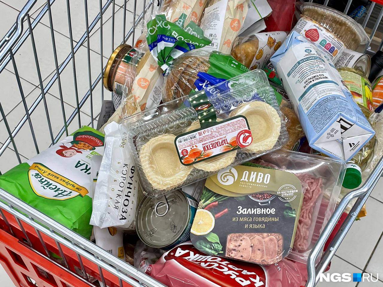 — Дежурный салат под шубой, пельменьки, отбивнушки, голубцы — любят их у нас в семье, — рассказывает о своих покупках женщина.