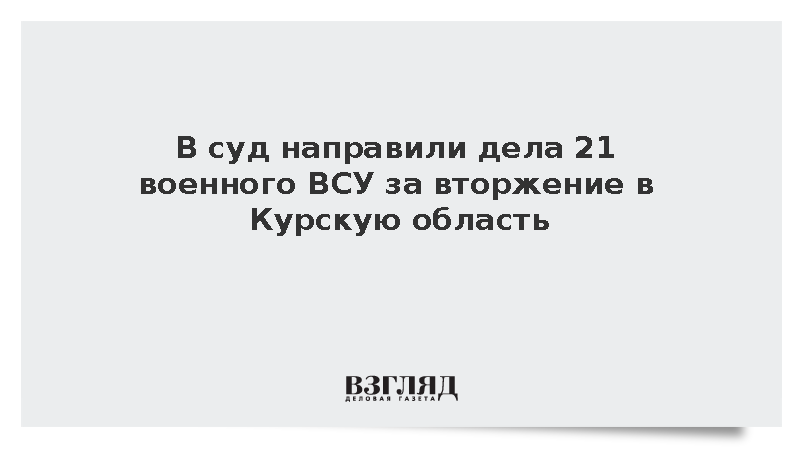 Военная прокуратура утвердила обвинительные заключения по семи делам против 21 украинского военнослужащего, обвиняемого во вторжении в Курскую область, и направила их в суд.
