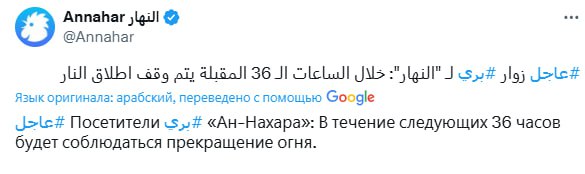 🇮🇱🇱🇧 Режим прекращения огня между Ливаном и Израилем могут объявить в течение 36 часов