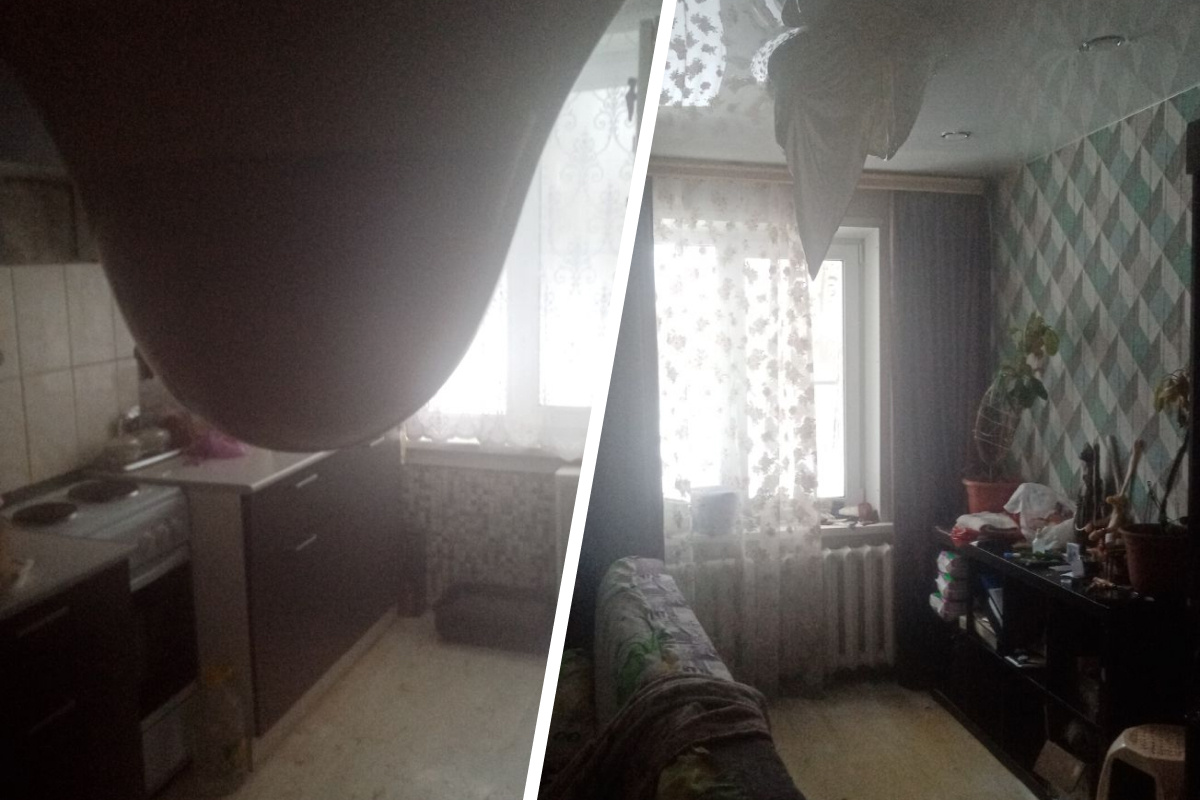 Как отметила женщина, из-за того что вода с верхних этажей начала затапливать ее квартиру, у нее лопнул натяжной потолок.