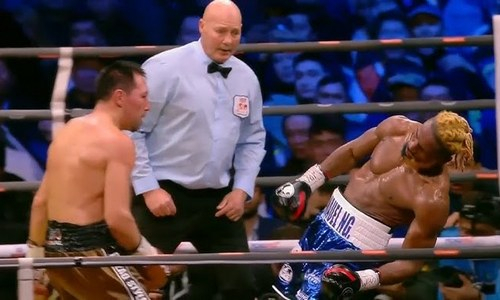 В топ-10 также вошёл финиш в исполнении чемпиона мира WBO/IBF в среднем весе Жанибека Алимханулы (17-0, 12 КО) в поединке с французом Анауэлем Нгамиссенге (14-1, 9 КО) 5 апреля в Астане. Тогда Жанибек защитил оба пояса, удосрочив оппонента в пятом раунде.