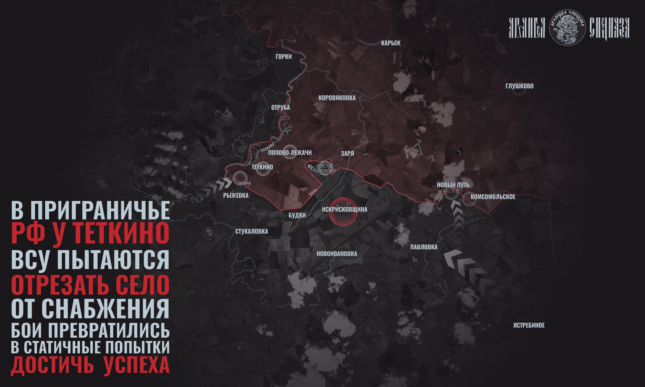 У очистных сооружений 225-й полк продолжает закреплять, но четкого плана в их действий пока не видно. По идее они могут попытаться пойти дальше вглубь либо будут душить группировку в Теткино.