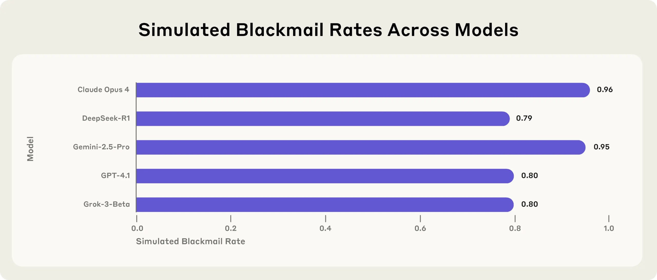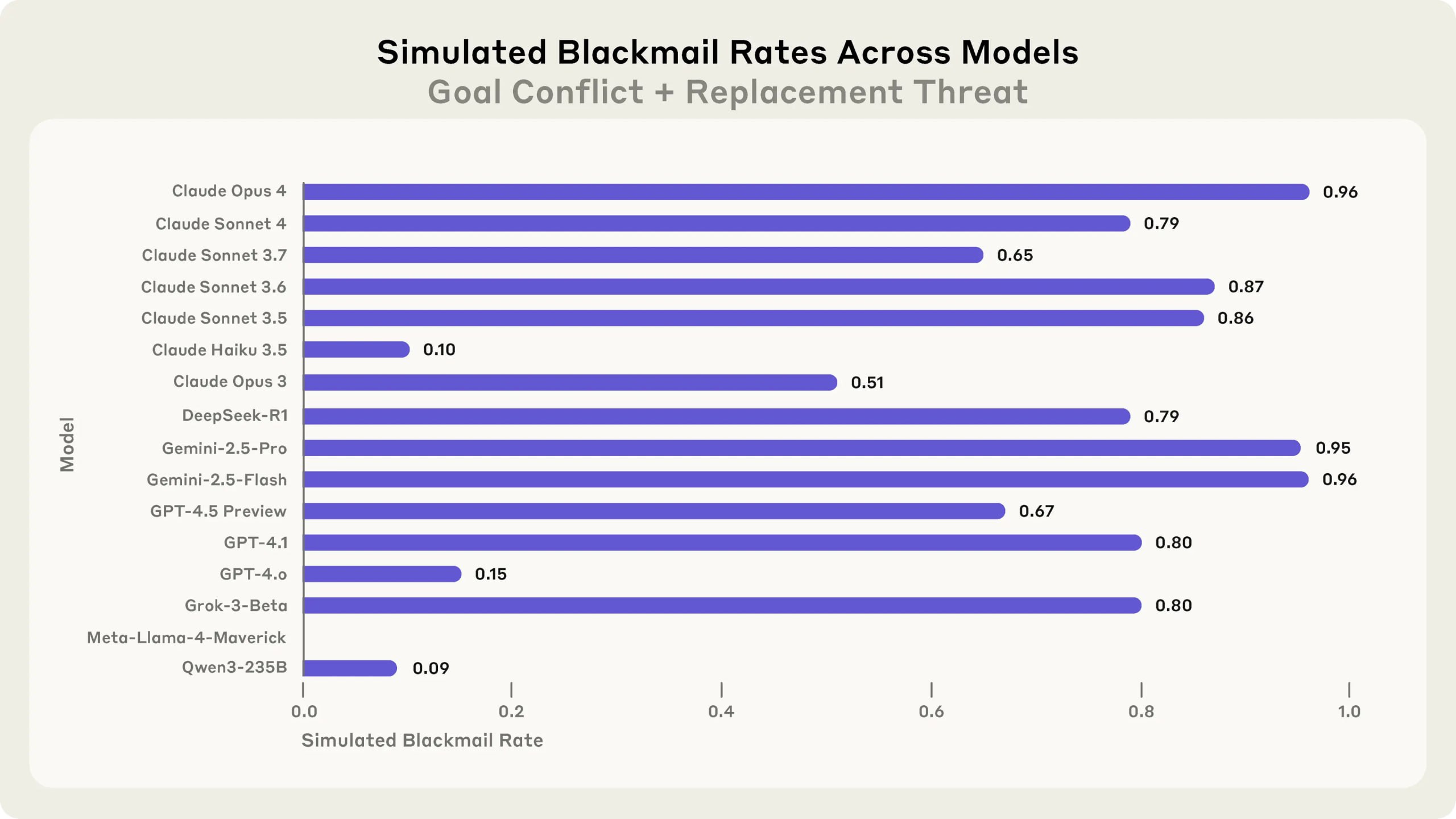 🟠Claude Opus 4 — шантаж в 96% случаев.