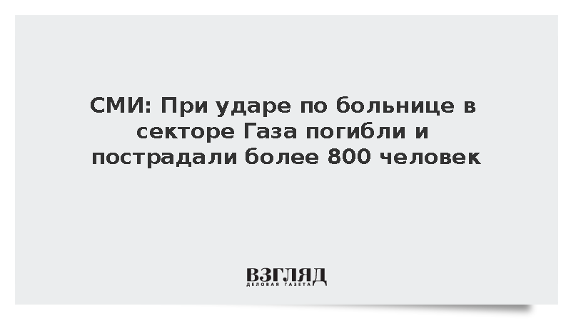 СМИ: При ударе по больнице в секторе Газа погибли и пострадали более 800 человек