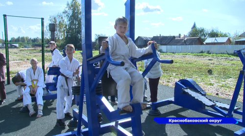 Площадку ГТО открыли заместитель министра спорта Нижегородской области и глава Краснобаковского округа. И местные мальчишки и девчонки уже начали осваивать новые тренажеры.