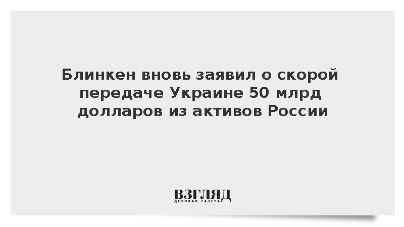Напомним, Блинкен уже обещал, что США и страны «Большой семерки» завершают процесс выделения 50 млрд долларов Украине из замороженных российских активов.