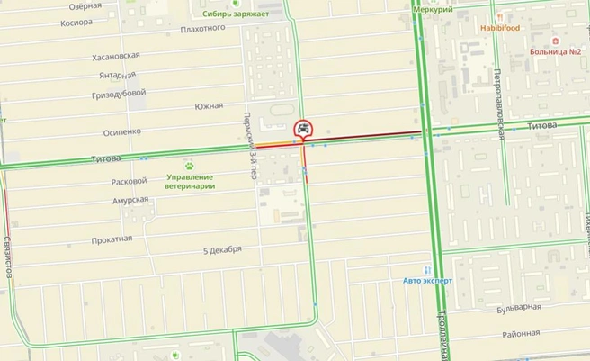 Информация об инциденте также появилась на сайте 2ГИС. По данным сервиса, на месте аварии образовалась пробка, затор наблюдается на Титова от перекрестка с Троллейной до пересечения с 3-м Пермским переулком. Движение автомобилей также затруднено по Пермской.
