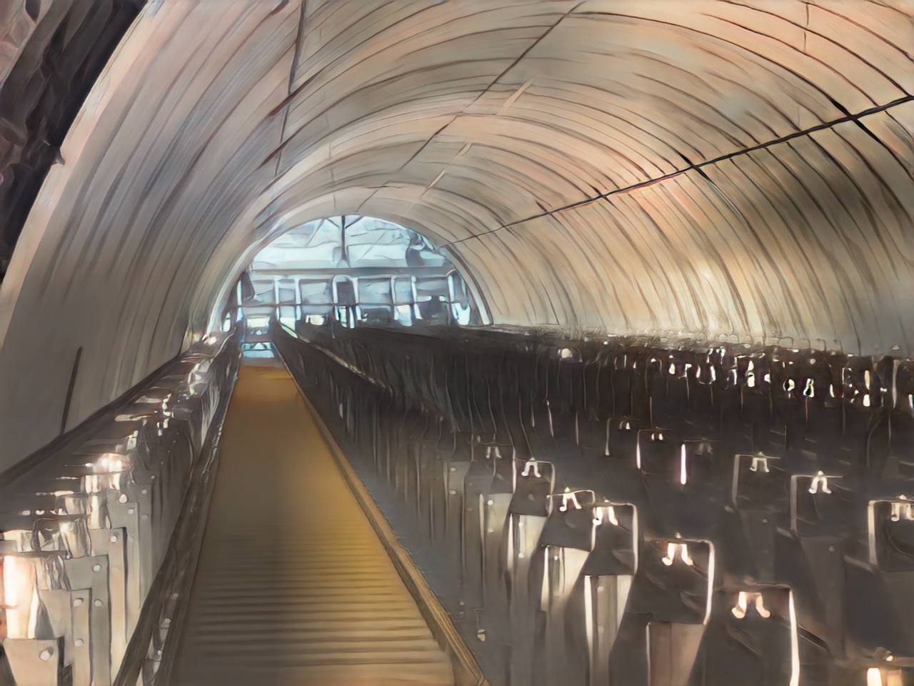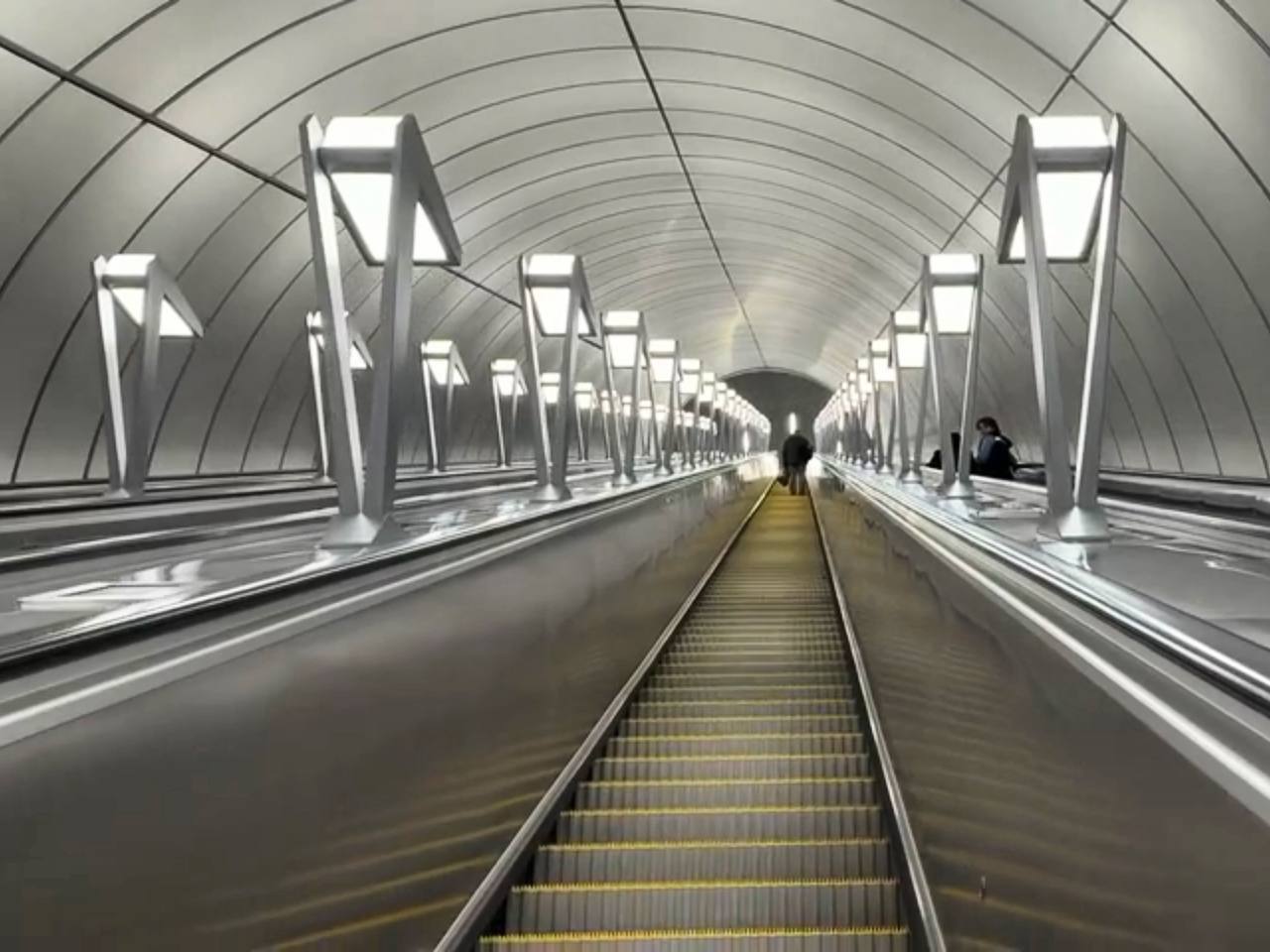 После открытия станции эскалаторный тоннель будет выглядеть так же, как в пересадочном узле станции «Авиамоторная» Калининской и Большой Кольцевой линий Московского метрополитена.