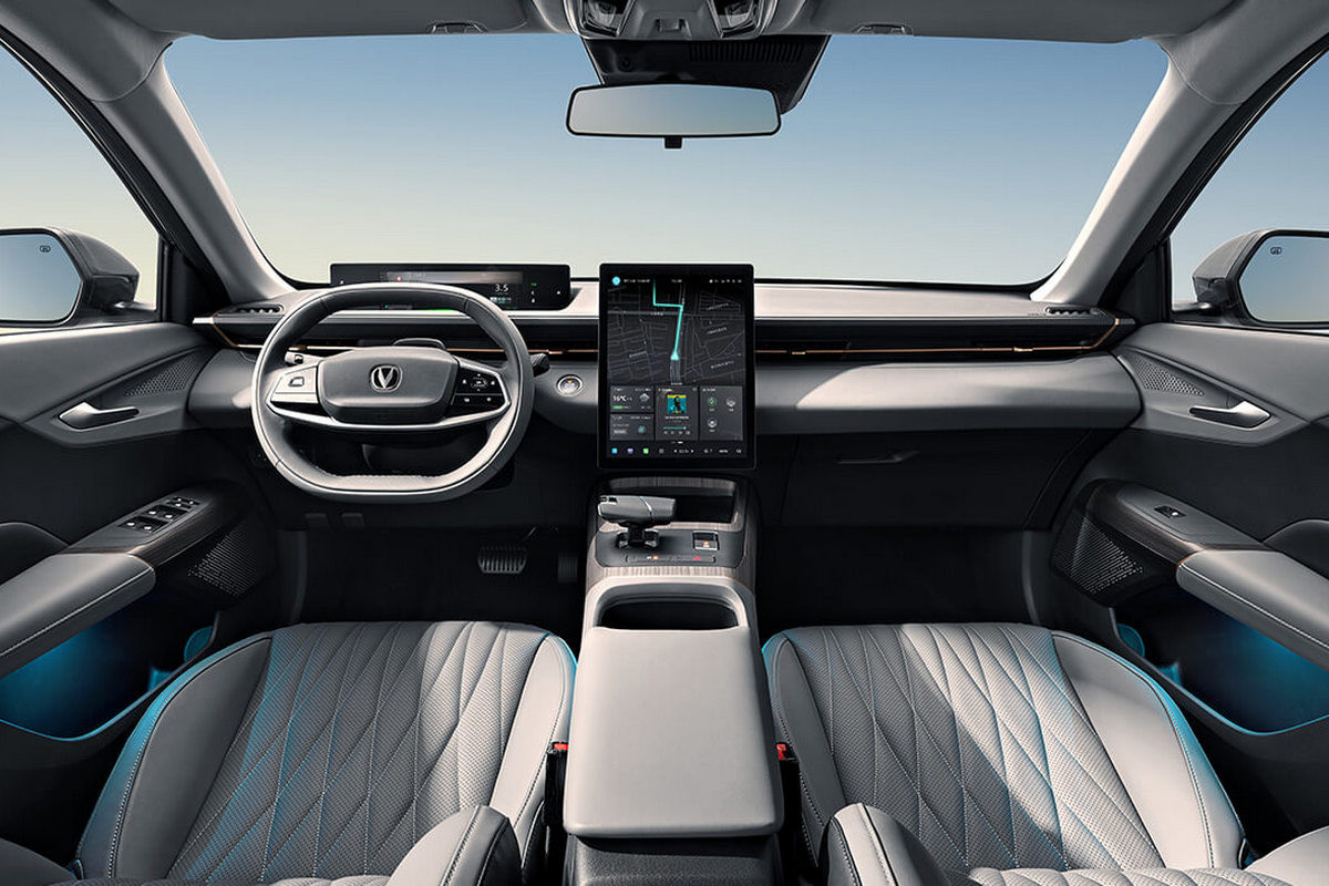 Внутри «пятерка» повторила донорский Changan, разница лишь в цветах обивки и материалов отделки. Оба седана имеют двухспицевое рулевое колесо, узкий экран приборки и мультимедиа-систему с вертикальным планшетом.