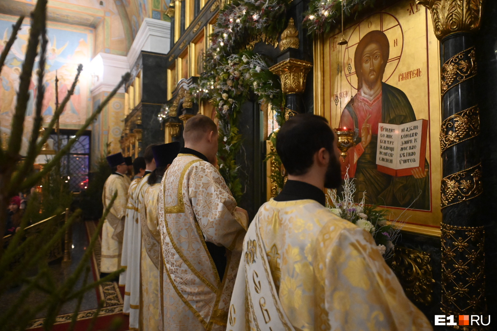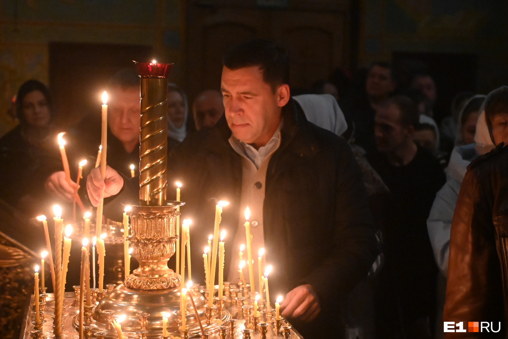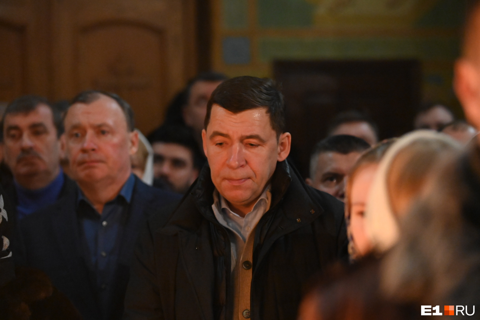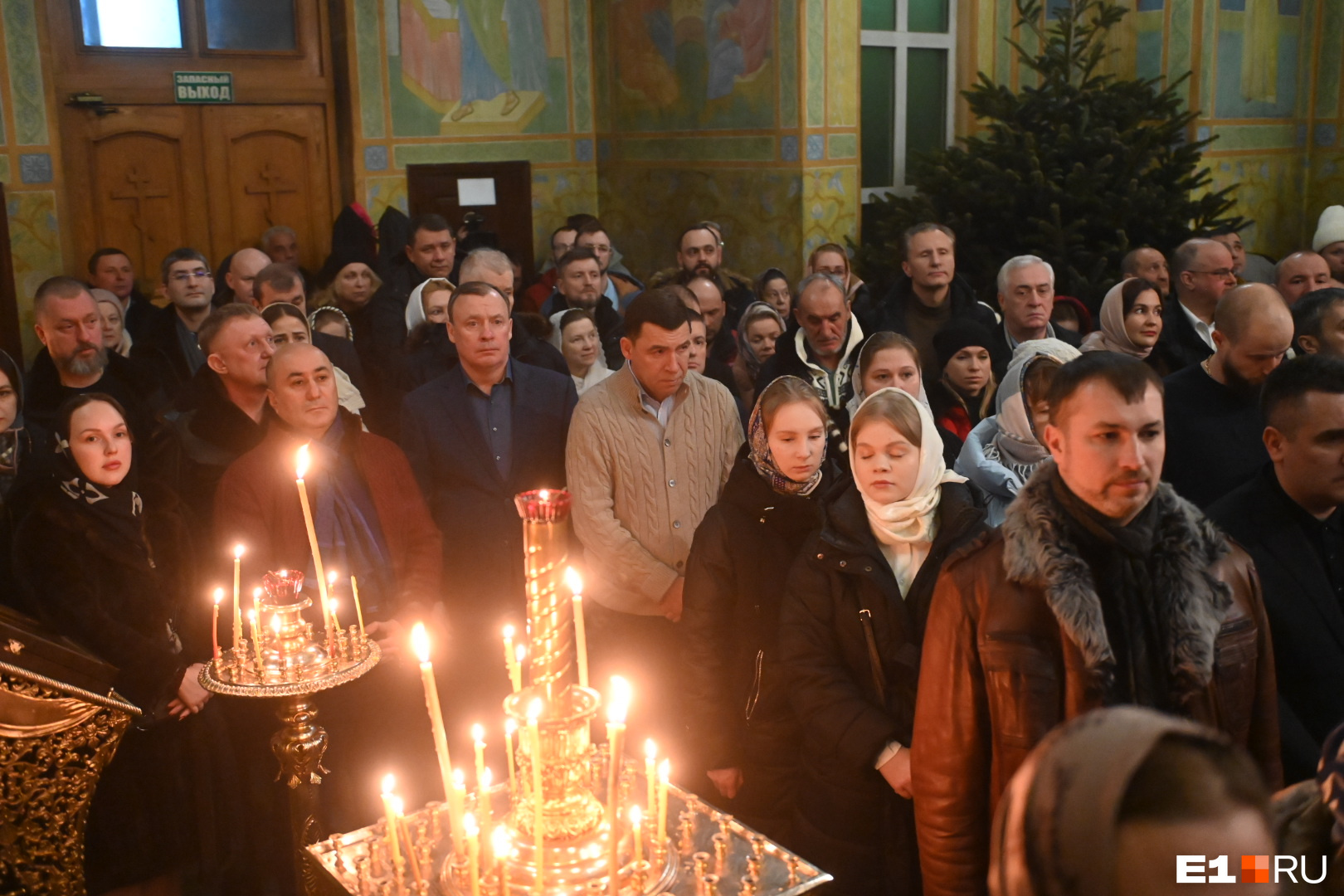 В отличие от прошлых лет, губернатор Евгений Куйвашев присоединился к рождественскому богослужению в кафедральном соборе