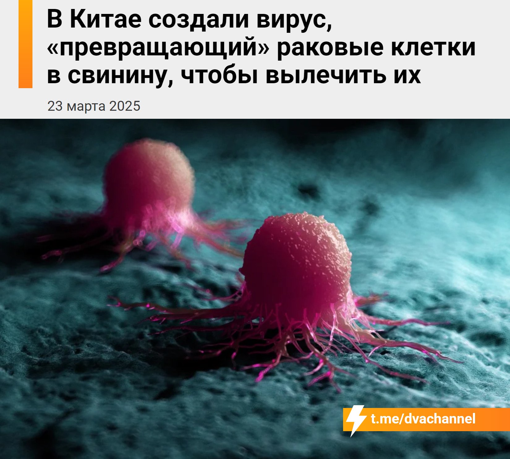 В Китае создали вирус, который превращает раковые клетки в свинину, чтобы иммунитет их уничтожил