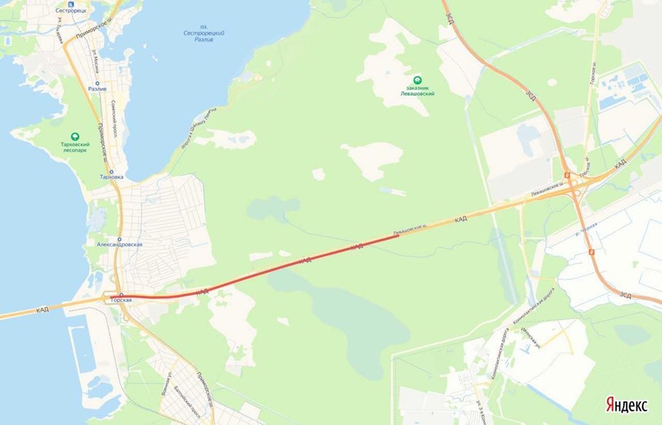 Внутреннее кольцо КАД между Приморским шоссе и ЗСД перекроют на три недели