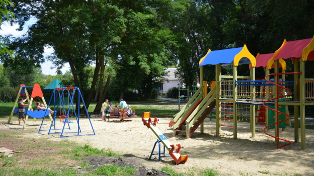В селе ранее не было централизованной детской игровой площадки. На территории парка установили 11 элементов: игровой комплекс, спортивные турники и лестницы, качели, карусель, качалку-балансир, песочницу, столик и скалодром.