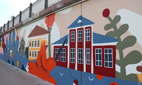 Непривлекательную стену превратили в арт-объект на улице Ленина.