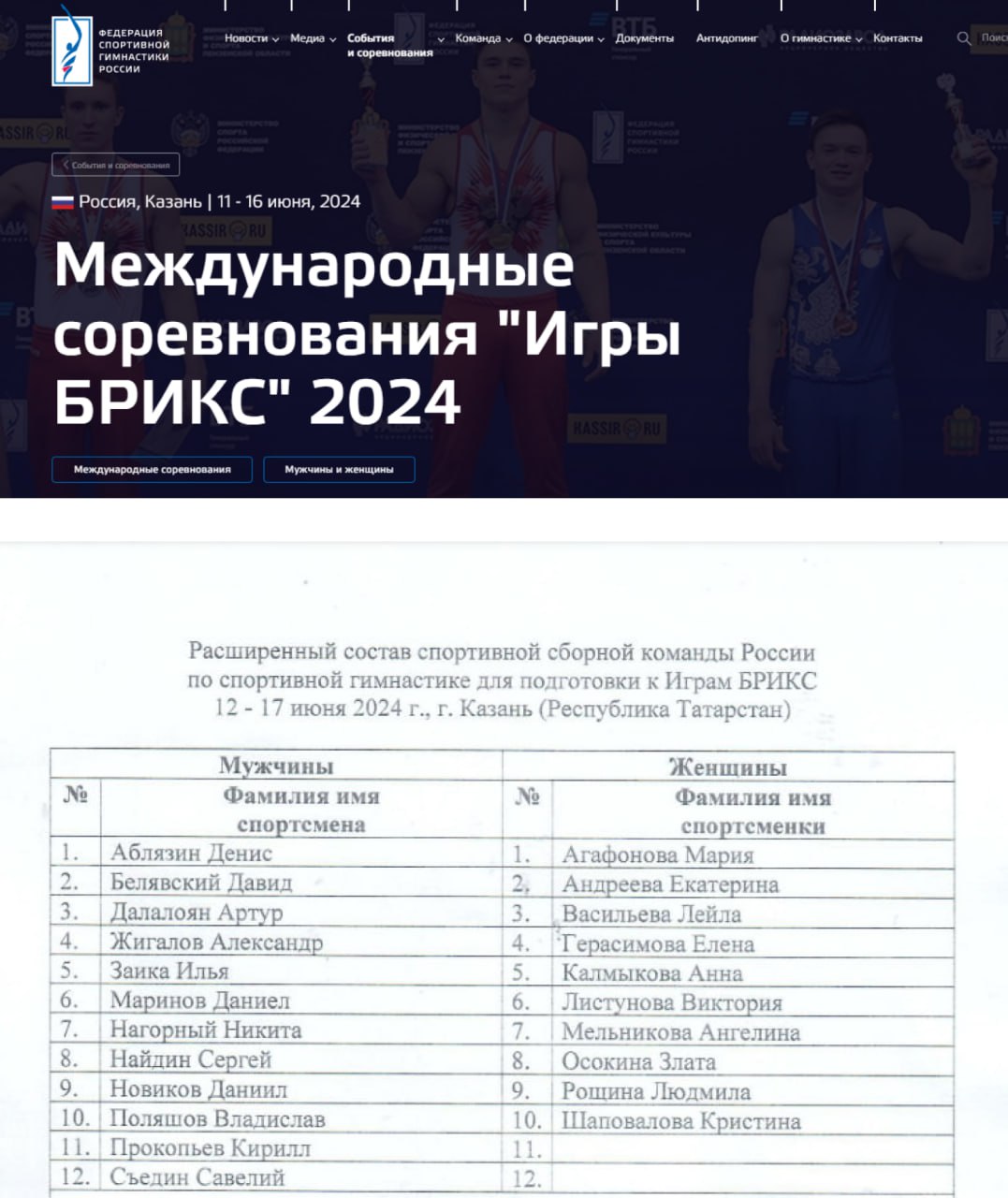 Шесть олимпийских чемпиона по спортивной гимнастике выступят на Играх БРИКС в Казани