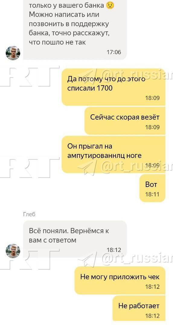 «Таксист требовал деньги наличными. Я ему сказал, что он может сам позвонить в техподдержку, наверняка ему быстрее удалось бы решить этот вопрос. Но он сказал, чтобы я выходил. Я ответил, что на костылях-то хожу с трудом».