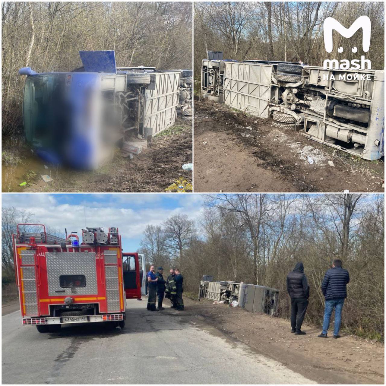 10 пассажиров пострадали в аварии с автобусом "Вольво", который опрокинулся в кювет по дороге из Кингисеппа в сторону Усть-Луги — по информации полиции, водитель мог быть пьян.