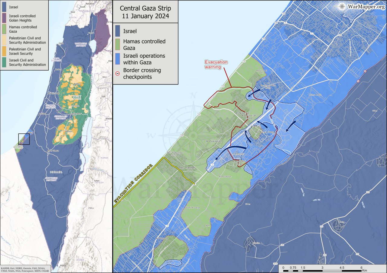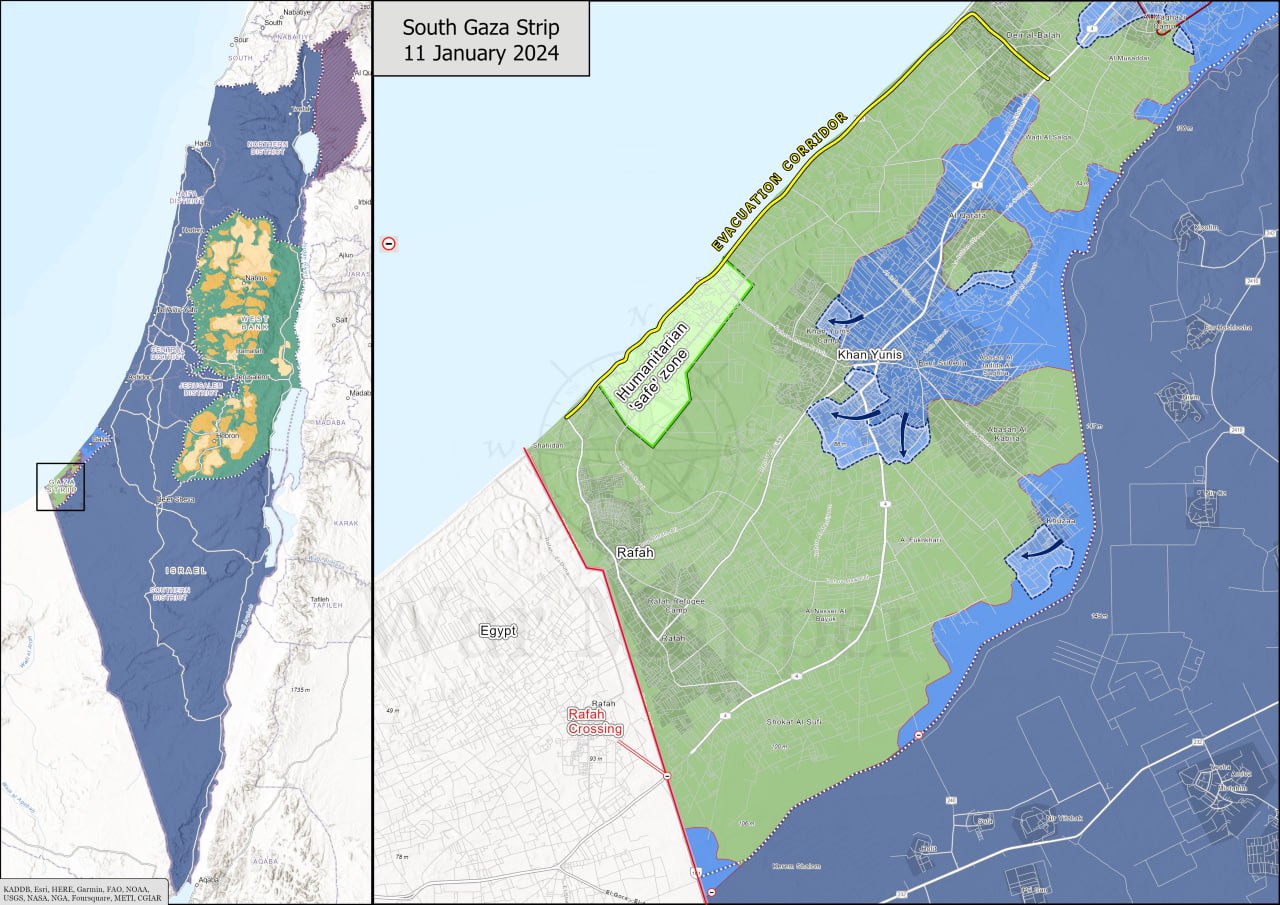 Израильская армия продолжает зачищать саму Газу и расширять контроль в районе Хан-Юниса. Дальнейшего продвижения на юге, в направлении погранперехода Рафах, пока не фиксируется.